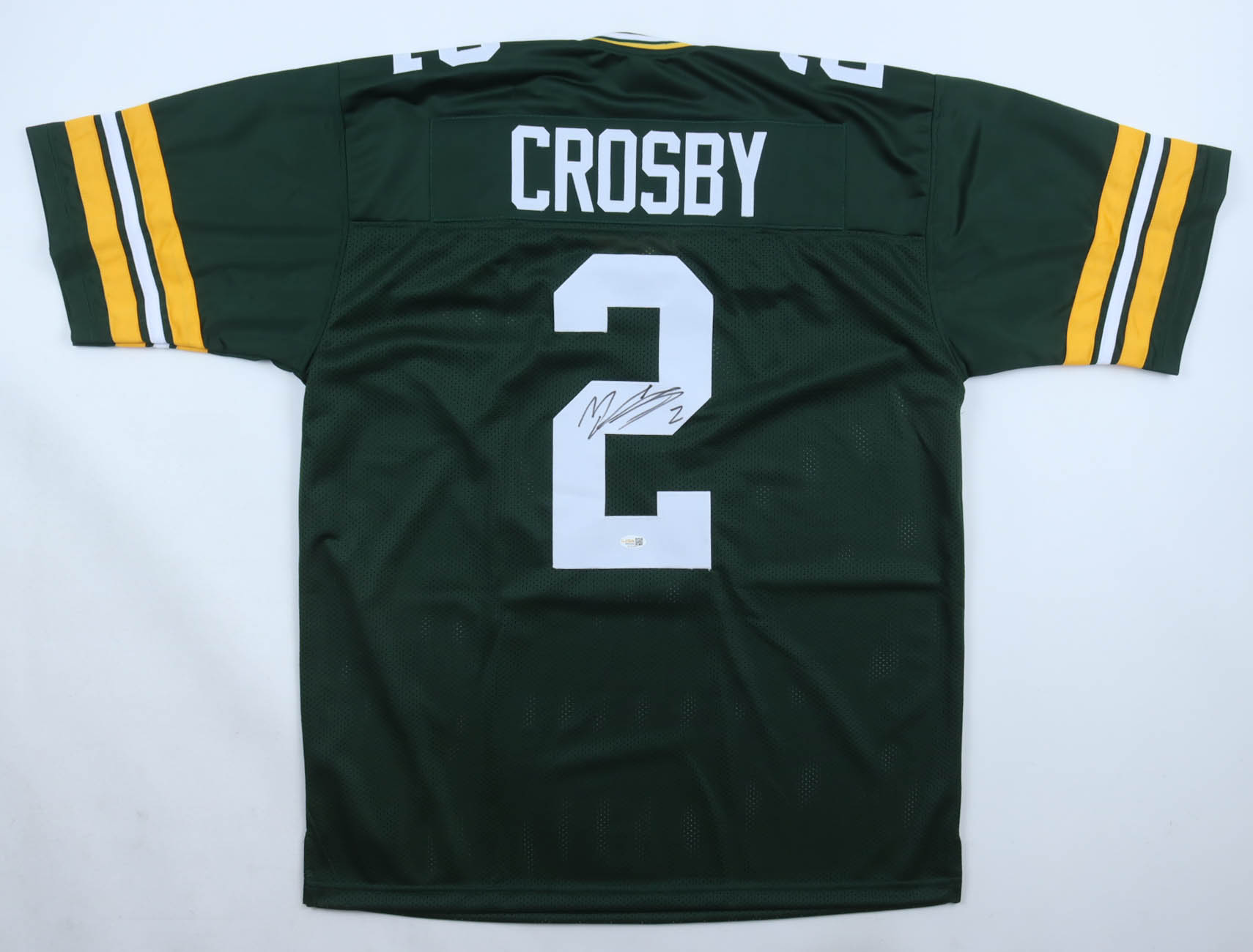 Custom jersey. Everything is sewn on, size XL. Has been hand-signed by Mason Crosby.