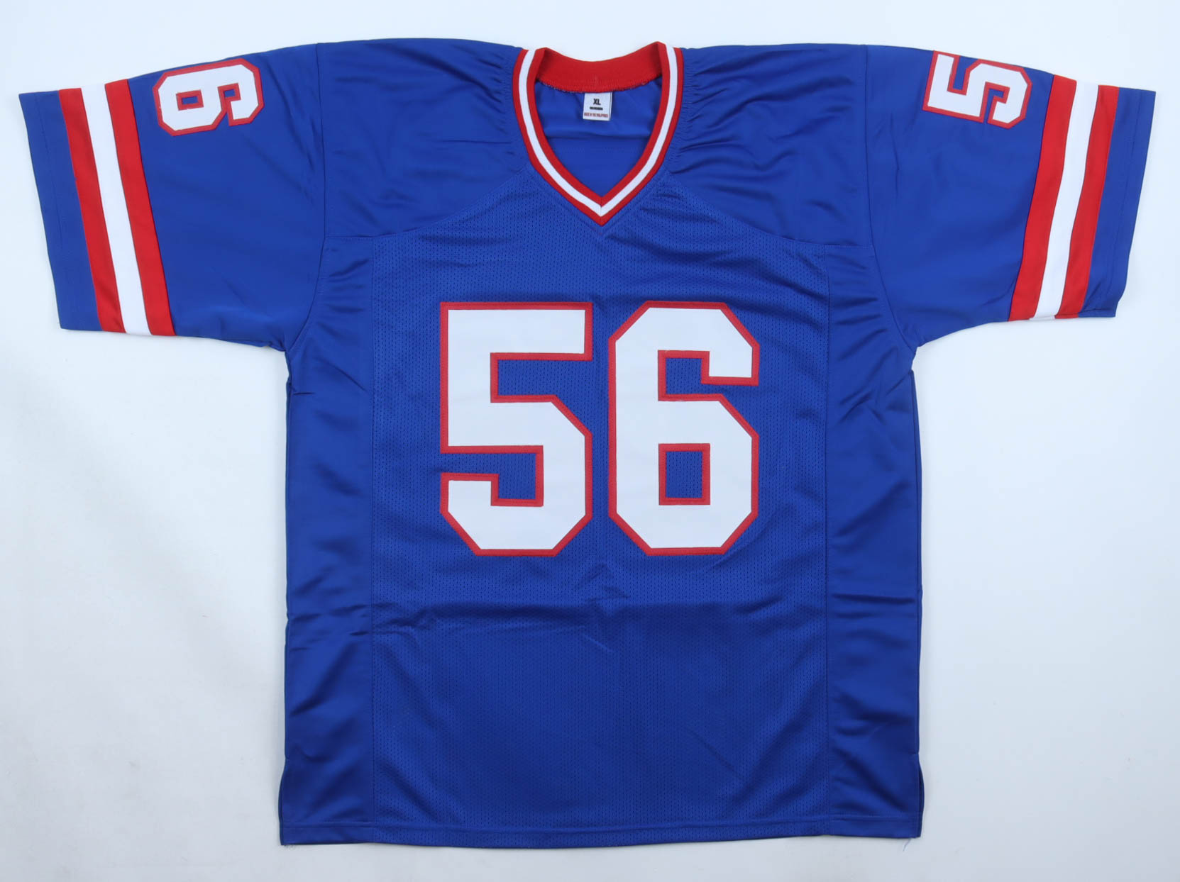 Custom jersey with everything sewn own, size XL. Hand-signed by Lawrence Taylor (HOF).