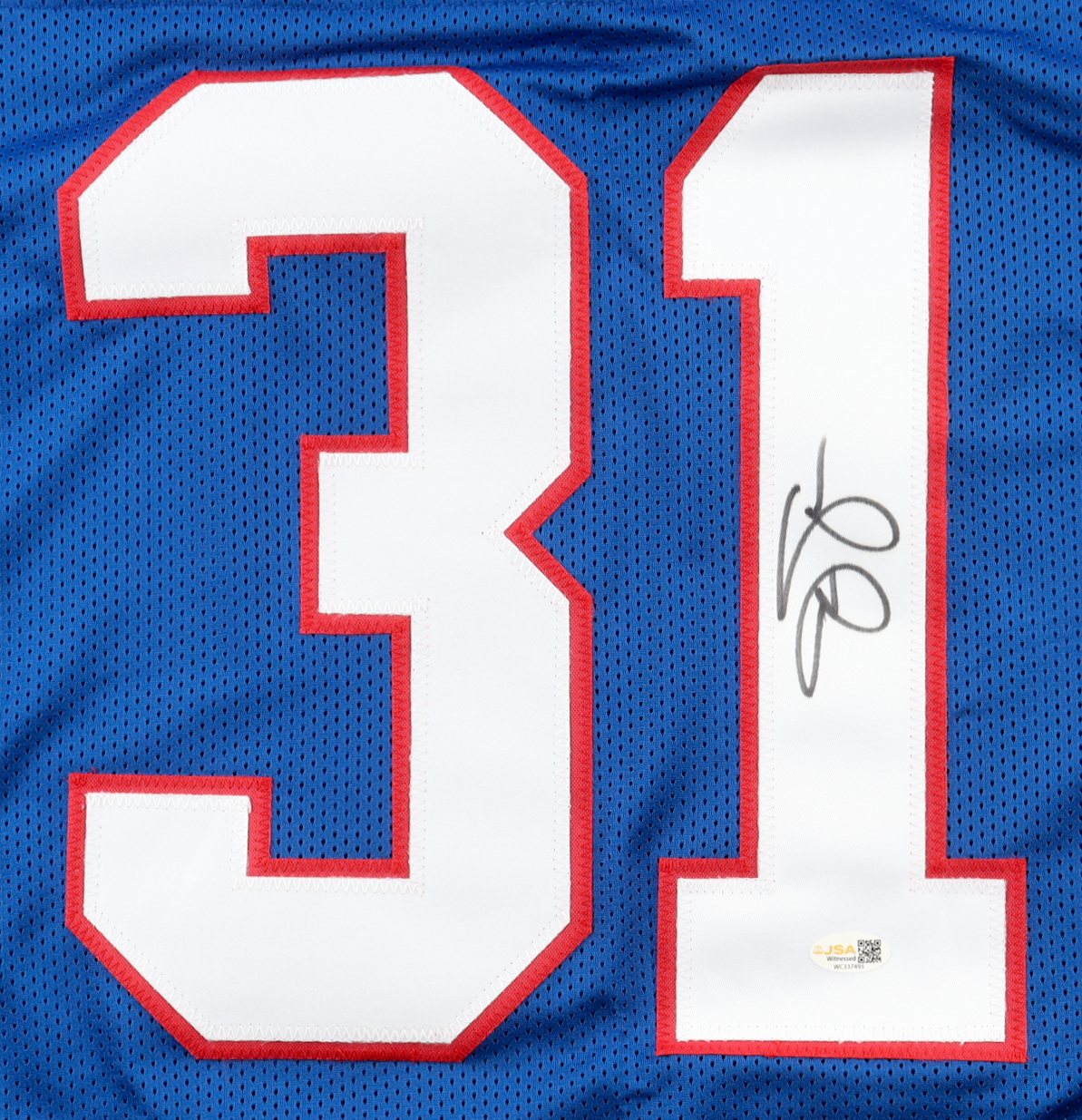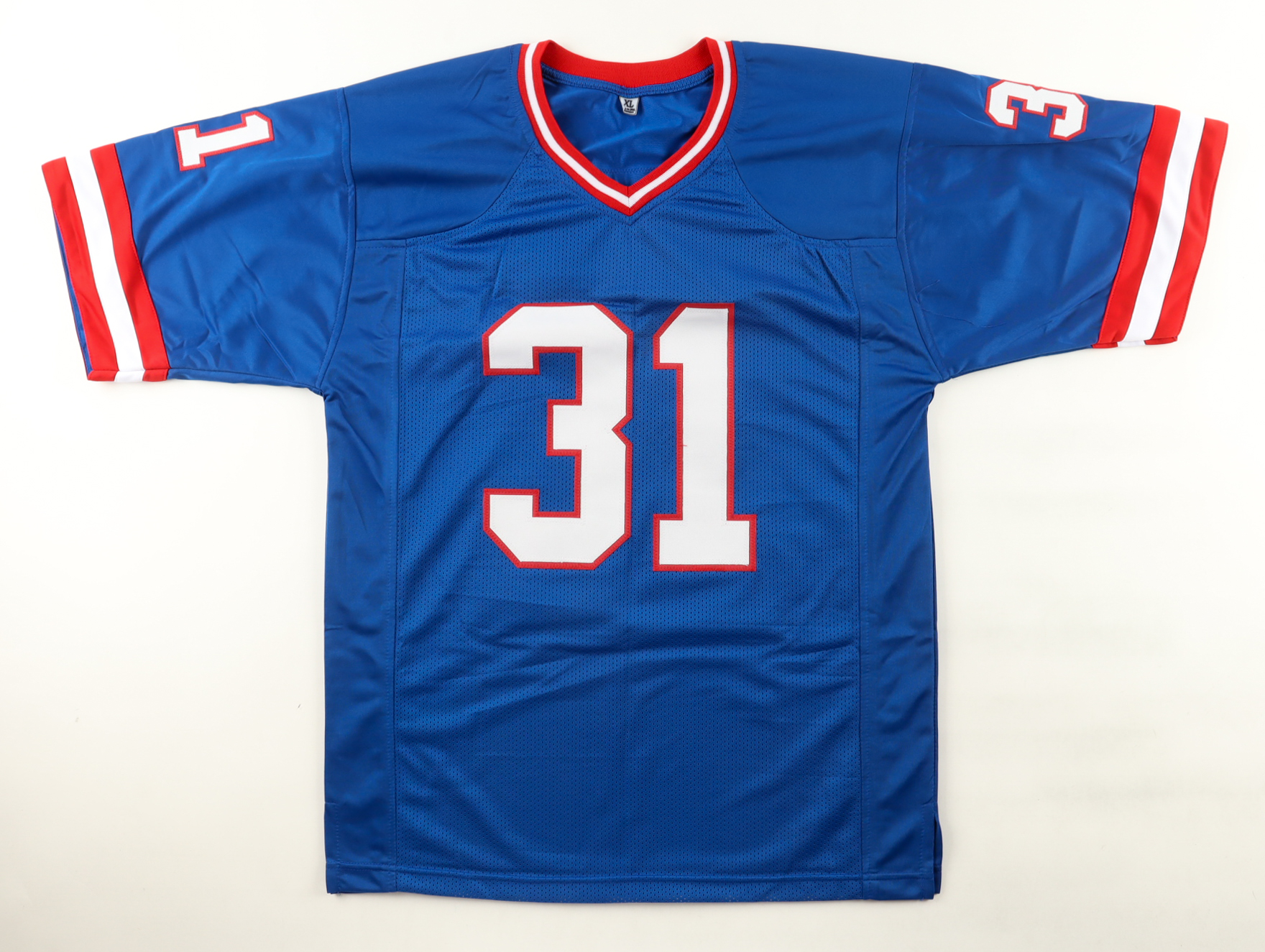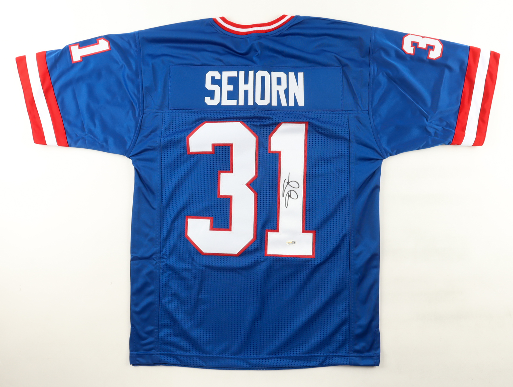 Custom jersey with everything sewn on, size XL. Hand-signed by Jason Sehorn.