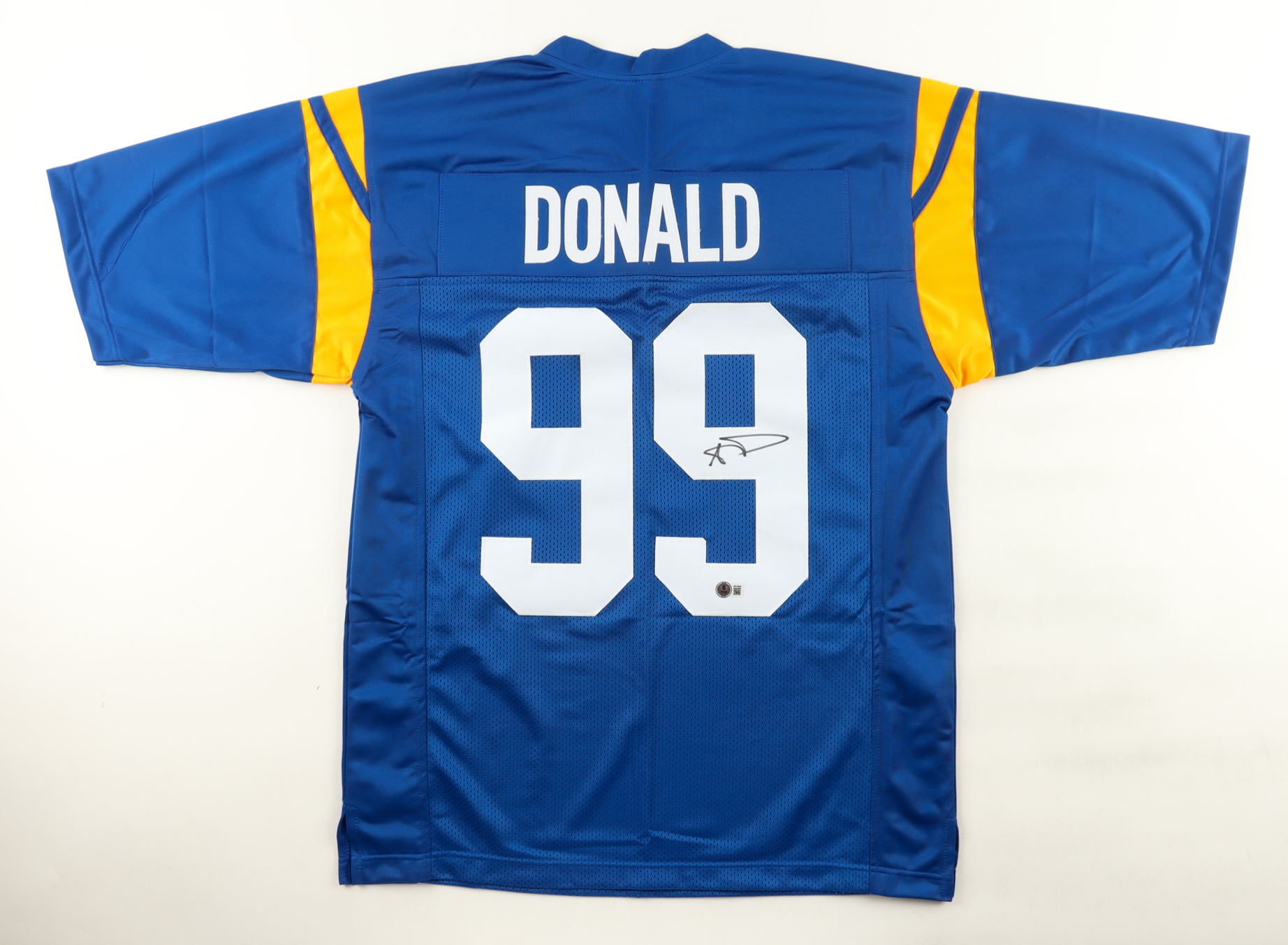 Custom jersey with everything sewn on, size XL. Has been hand-signed by Aaron Donald.
