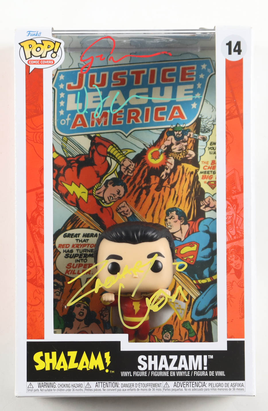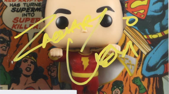 Vinyl figure measures approximately 4" tall and has been hand-signed on the packaging by Zachary Levi, Grace Caroline Curry, and DJ Cotrona.