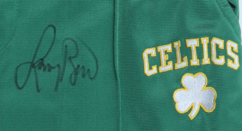 NBA Warm-Up Pants, everything is sewn on, size M. Hand-signed by Larry Bird (Boston Celtics, HOF).