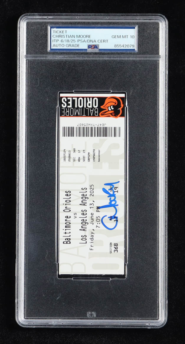 Christian Moore Signed 2025 Debut Game Ticket Stub (PSA | Auto Grade 10)
