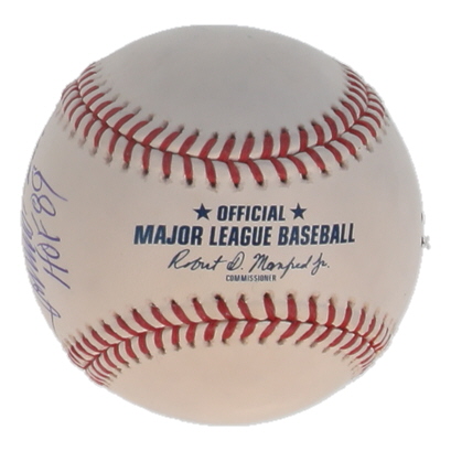 Rawlings Official Major League Hall of Fame Logo Baseball. Hand-signed and inscribed by Johnny Bench (Cincinnati Reds, HOF). Please note, there are stains throughout the baseball.