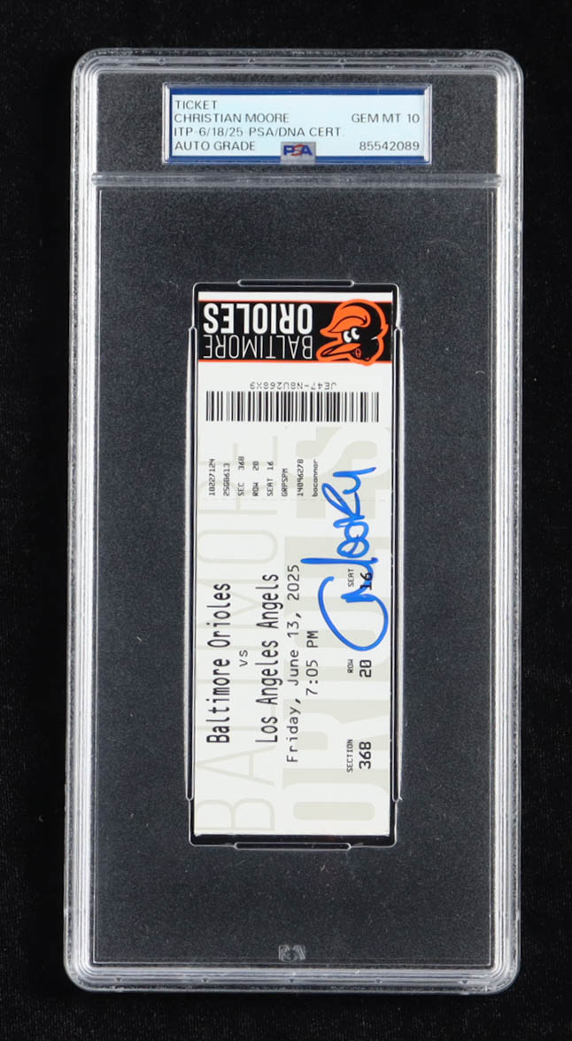 Christian Moore Signed 2025 Debut Game Ticket Stub (PSA | Auto Grade 10)