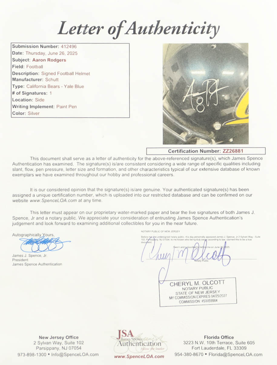 Aaron Rodgers Signed California Bears Full-Size Helmet