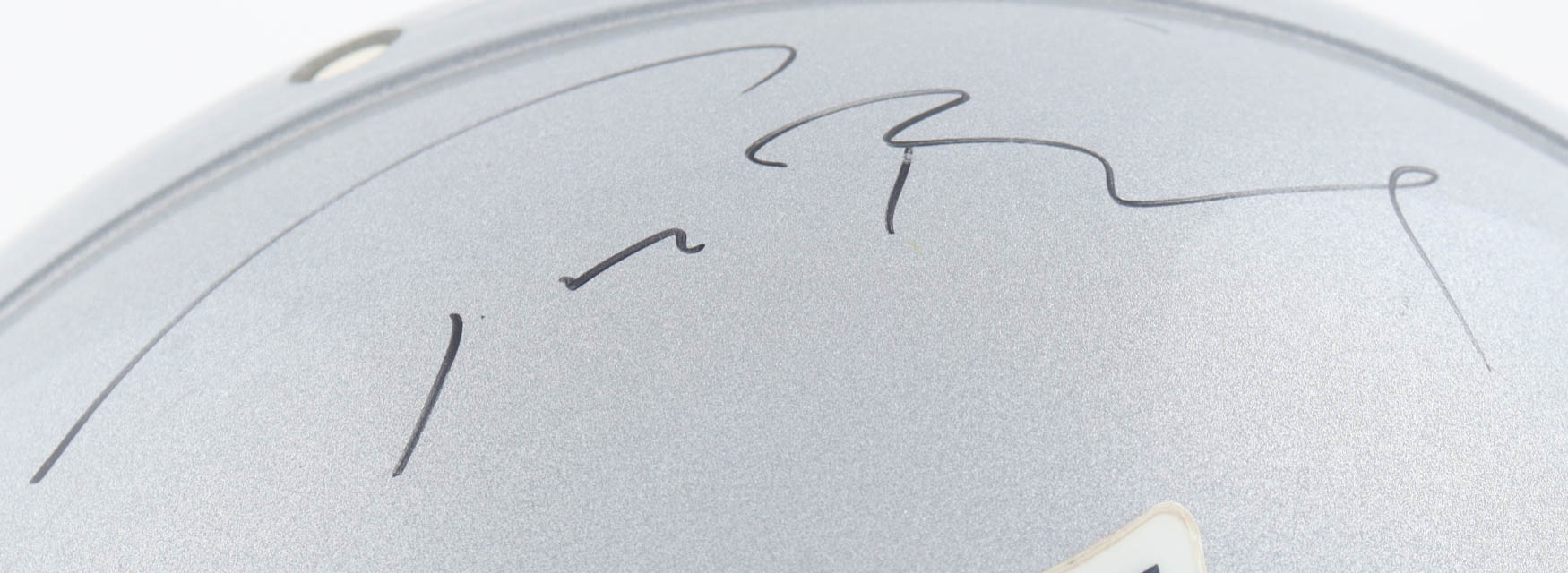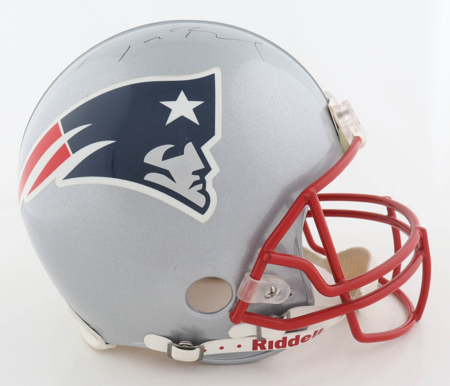 Riddell New England Patriots Full-Size Authentic On-Field helmet has been hand-signed by Tom Brady.