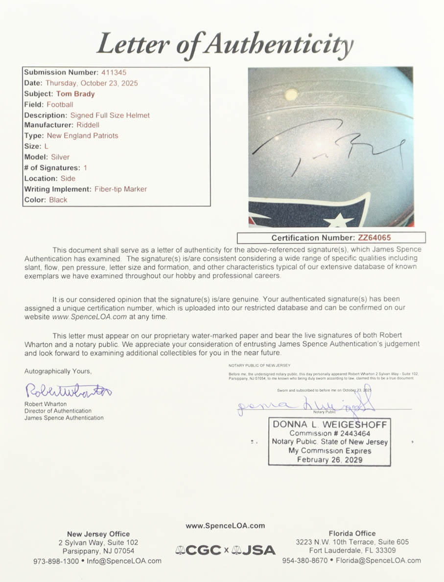 Tom Brady Signed Patriots Full-Size Authentic On-Field Helmet (JSA)