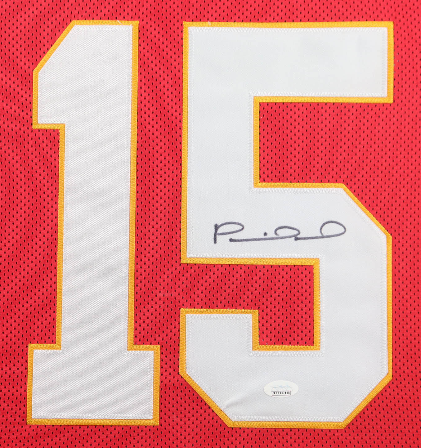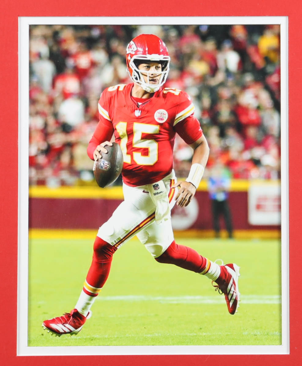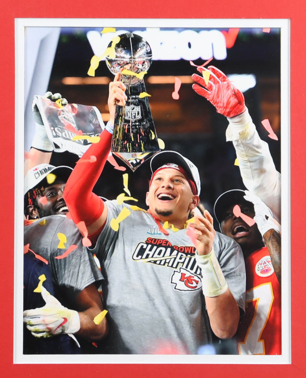 Custom frame measures 35.5" x 44" in size. Kansas City Chiefs jersey has been hand-signed by Patrick Mahomes II.