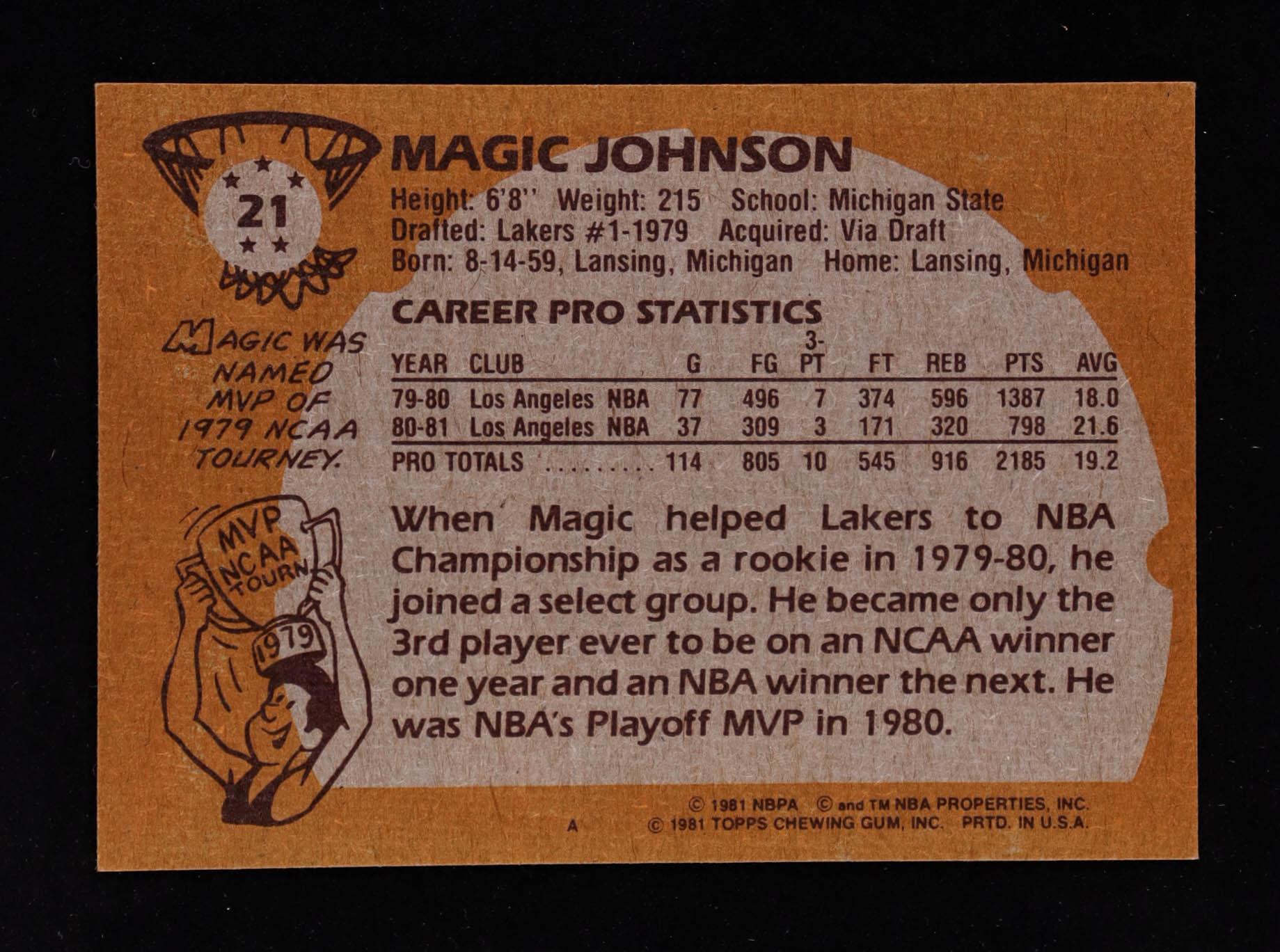Magic Johnson 1981-82 Topps #21