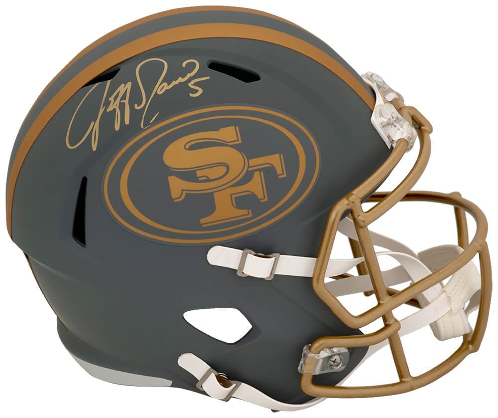 Riddell San Francisco 49ers full-size slate alternate speed replica helmet has been hand-signed by Jeff Garcia.