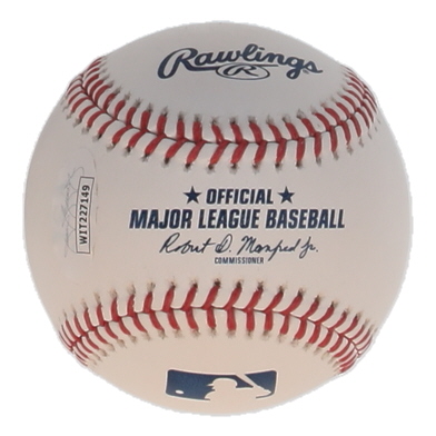 Rawlings Official Major League Baseball. Hand-signed and inscribed by Hideki Matsui (New York Yankees). Please note, there are stains throughout the baseball.