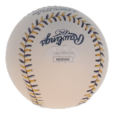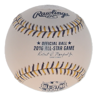 Rawlings Official 2016 All-Star Game Baseball. Hand-signed and inscribed by Starling Marte (Pittsburgh Pirates). Please note, there are stains throughout the baseball.