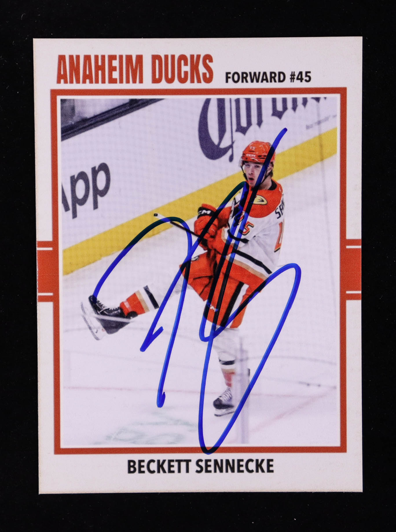 Card has been hand-signed by Beckett Sennecke (Anaheim Ducks). Please see photos for details regarding the condition of the card.