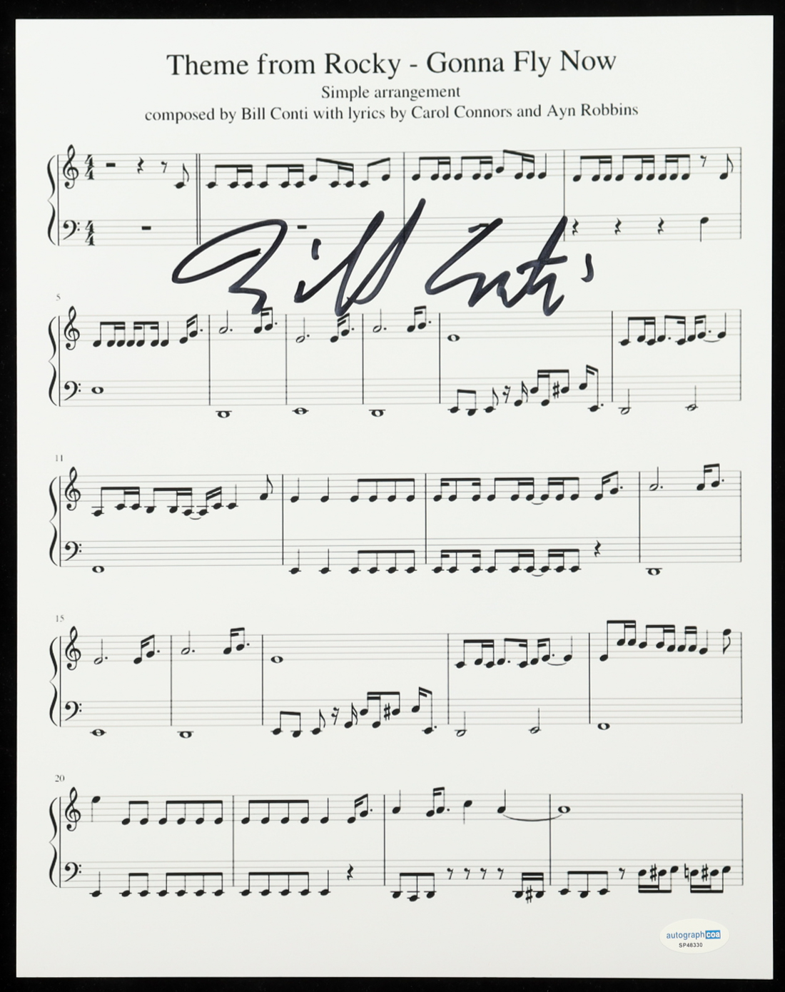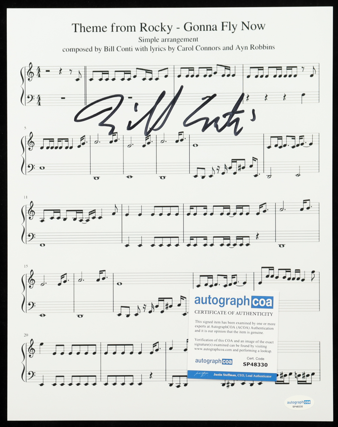 Bill Conti Signed "Gonna Fly Now" 11x14 Music Sheet Photo (ACOA)