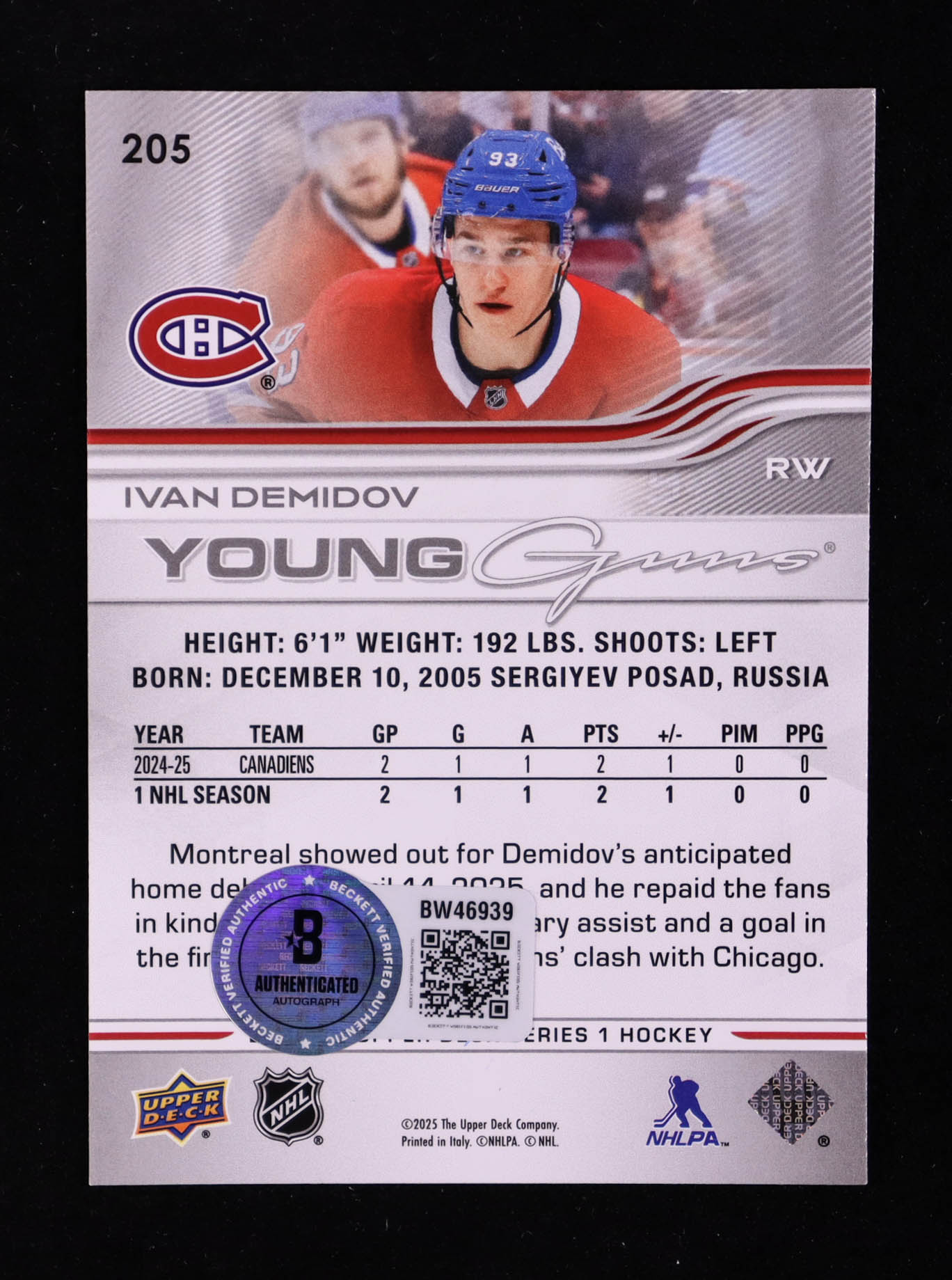 Ivan Demidov Signed 2025-26 Upper Deck #205 YG RC (Beckett)