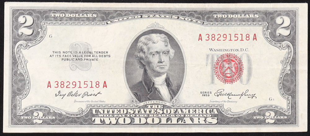 1953 U.S. $2 Legal Tender Note, Red Seal - Fr. 1506 (AA Block) Signed: Priest / Humphreys