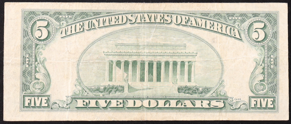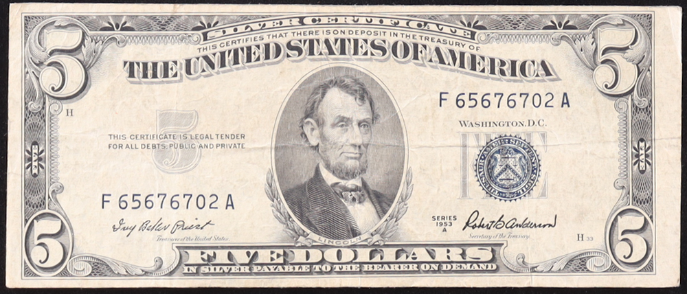 1953-A U.S. $5 Silver Certificate, Blue Seal - Fr. 1656 (FA Block) Signed: Priest / Anderson