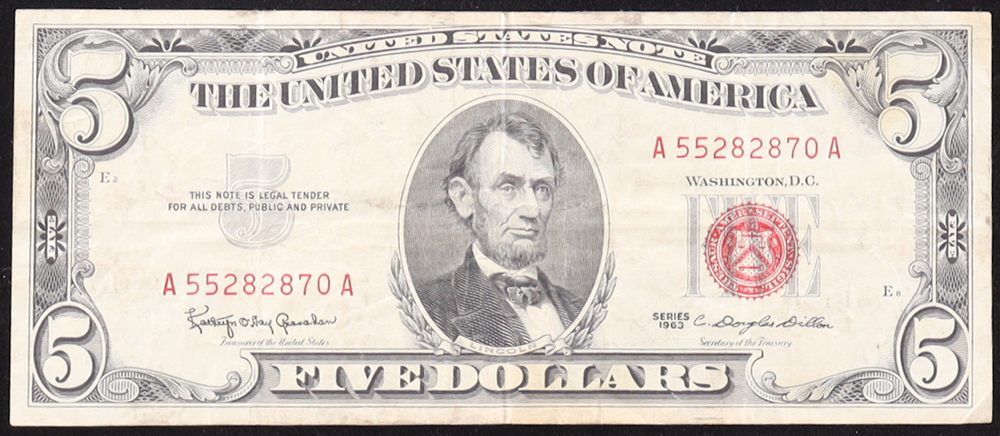 1963 U.S. $5 Legal Tender Note, Red Seal - Fr. 1536 (AA Bleck) Signed: Granahan / Dillon