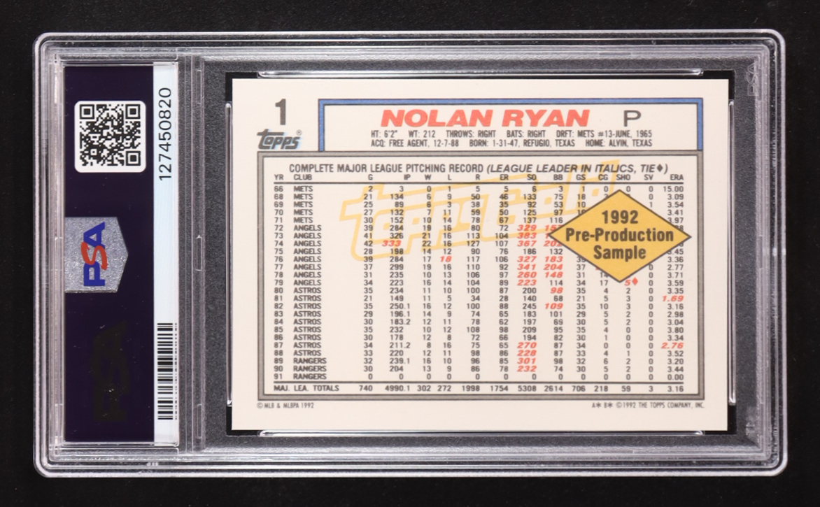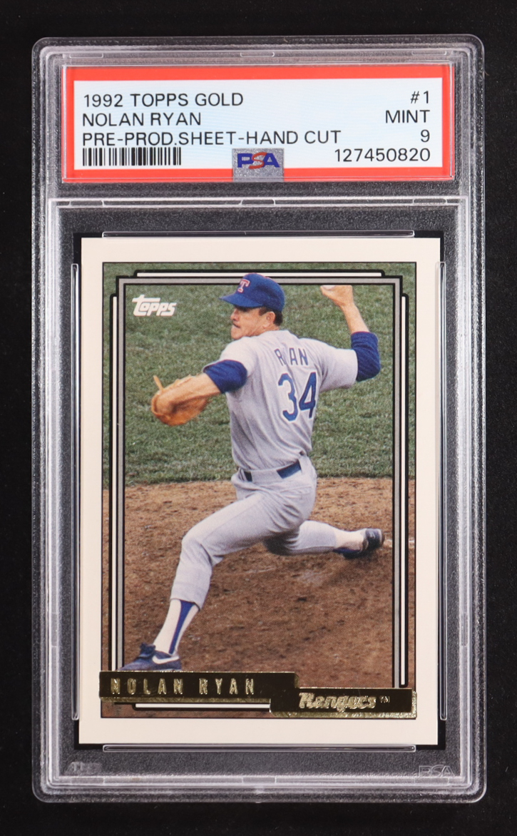 Nolan Ryan 1992 Topps Gold Pre-Production Sheet Hand Cut #1 (PSA 9)