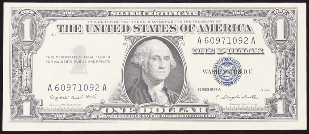 1957-A U.S. $1 Silver Certificate, Blue Seal - Fr. 1620 (AA Block) Signed: Smith / Dillon