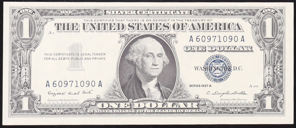 1957-A U.S. $1 Silver Certificate, Blue Seal - Fr. 1620 (AA Block) Signed: Smith / Dillon