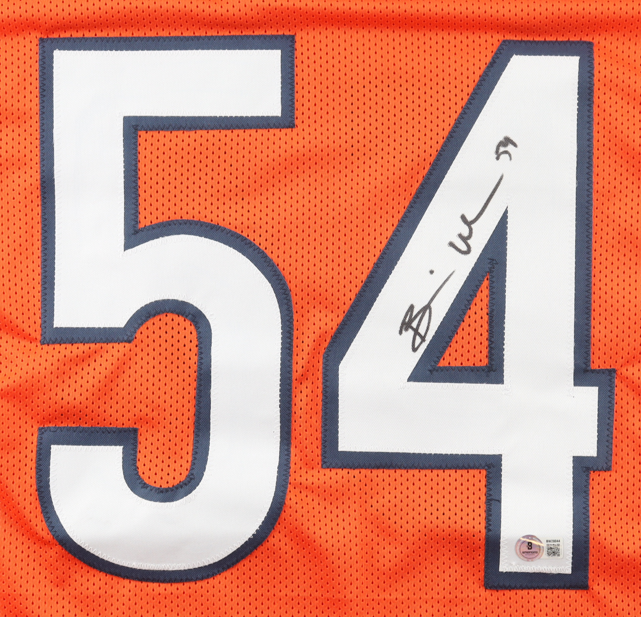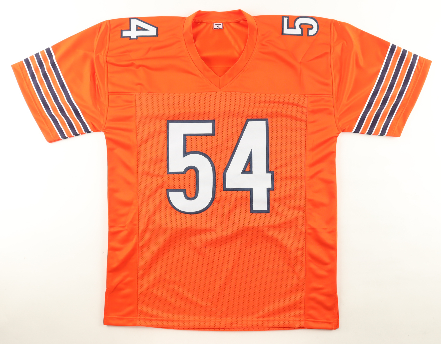 Custom jersey with everything sewn on, size XL. Hand-signed by Brian Urlacher (HOF).