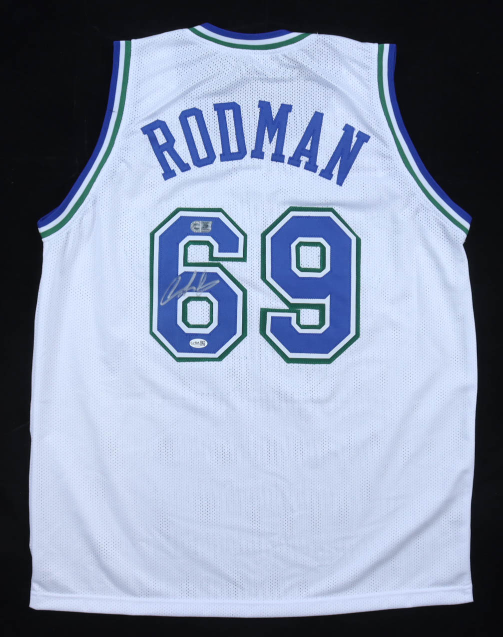 Custom jersey. Everything is sewn on, size XL. Hand-signed by Dennis Rodman (HOF).