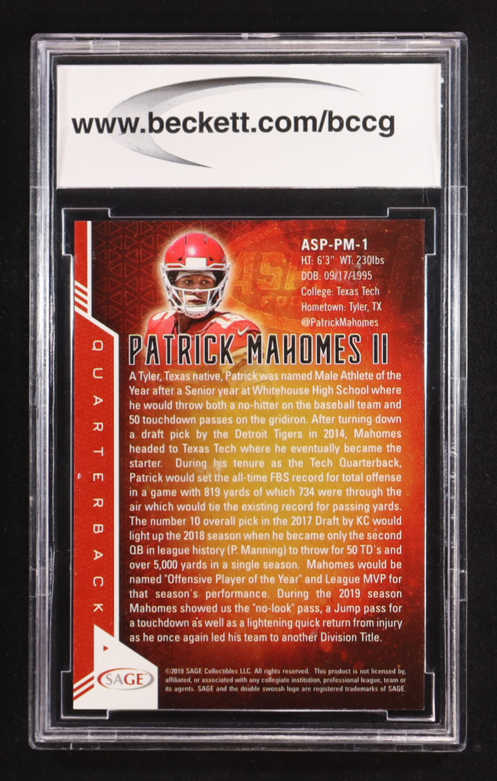 Patrick Mahomes II 2019 Sage Aspire Red #ASP-PM-1 (BCCG 10)
