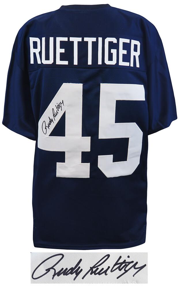 Custom jersey. Everything has been sewn on, size XL. Has been hand-signed by Rudy Ruettiger.