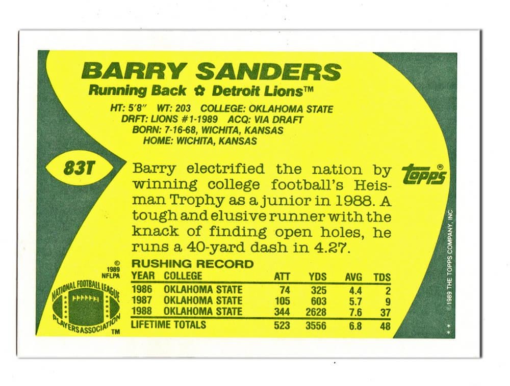 Barry Sanders Signed 1989 Topps #83T RC (Schwartz)