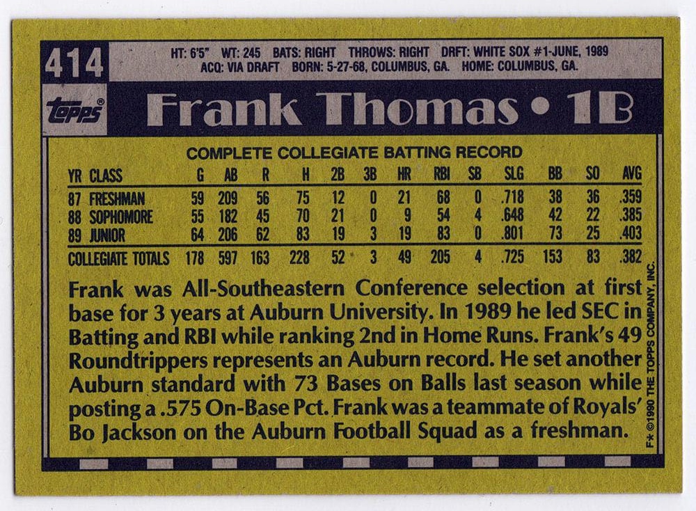 Frank Thomas Signed 1990 Topps #414 RC Inscribed "HOF 2014" (Schwartz)
