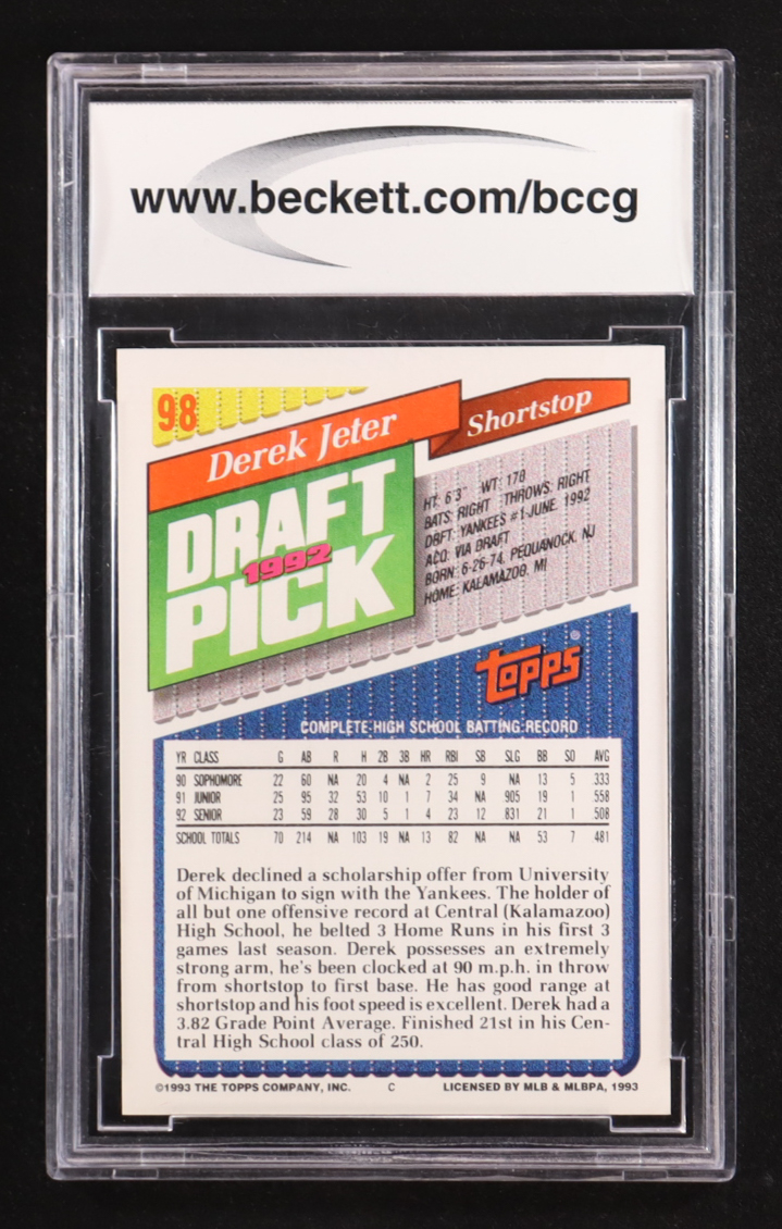 Derek Jeter 1993 Topps #98 RC (BCCG 10)