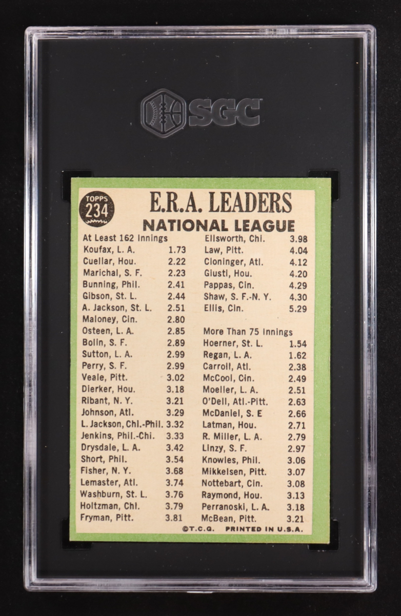 Sandy Koufax / Mike Cuellar / Juan Marichal 1967 Topps N.L. ERA Leaders #234 (SGC 5.5)