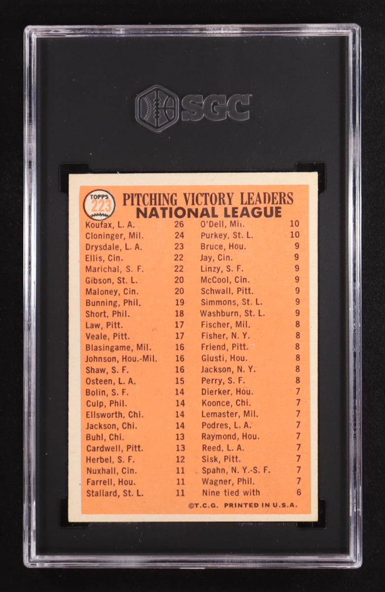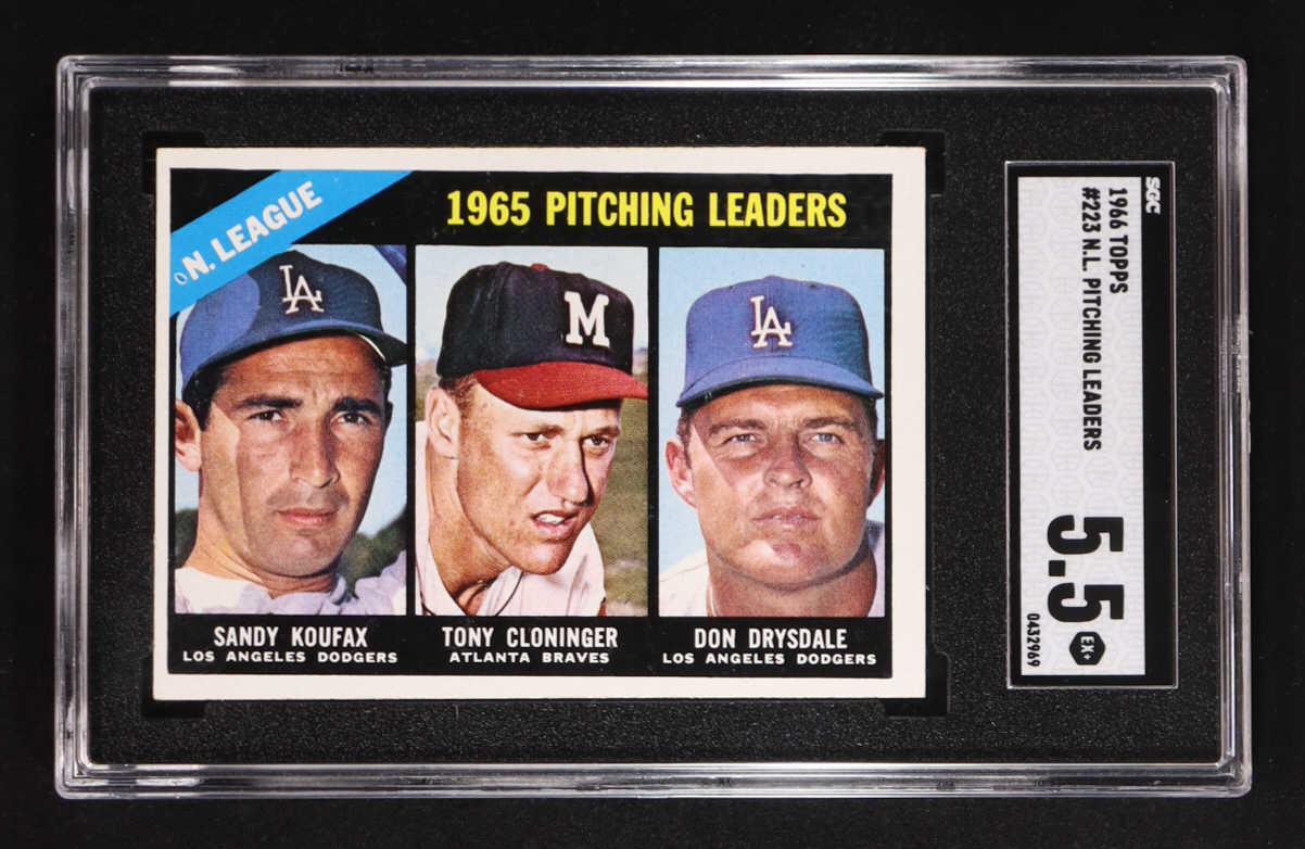 Sandy Koufax / Tony Cloninger / Don Drysdale 1966 Topps N.L. Pitching Leaders #223 (SGC 5.5)