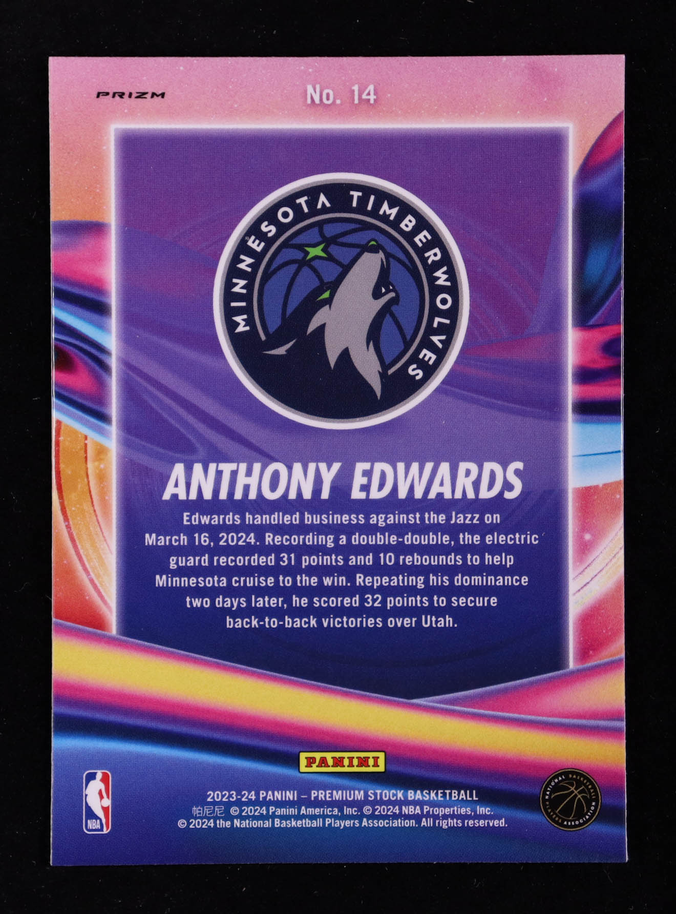 Anthony Edwards 2023-24 Hoops Premium Stock Anti Gravity Silver Prizm #14