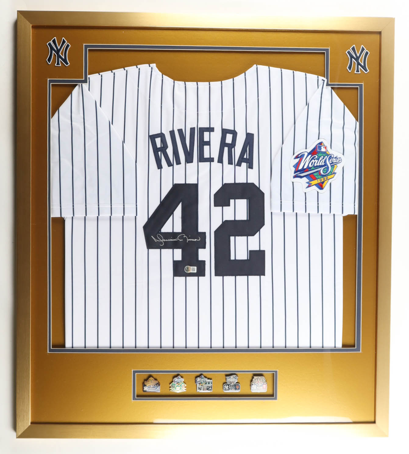 Mariano Rivera Signed Custom Framed Jersey Display with (5) World Series Pins (Beckett)