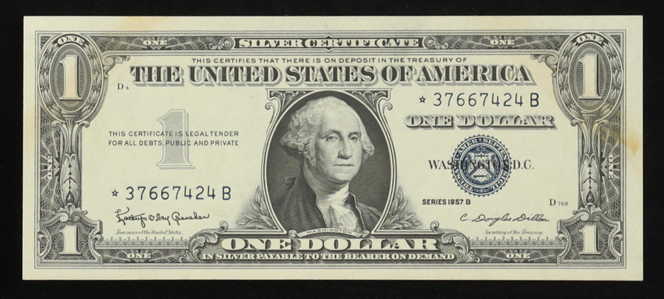 1957-B U.S. $1 Silver Certificate "Star" Note, Blue Seal - Fr. 1621* (*B Block) Signed: Granahan / Dillon