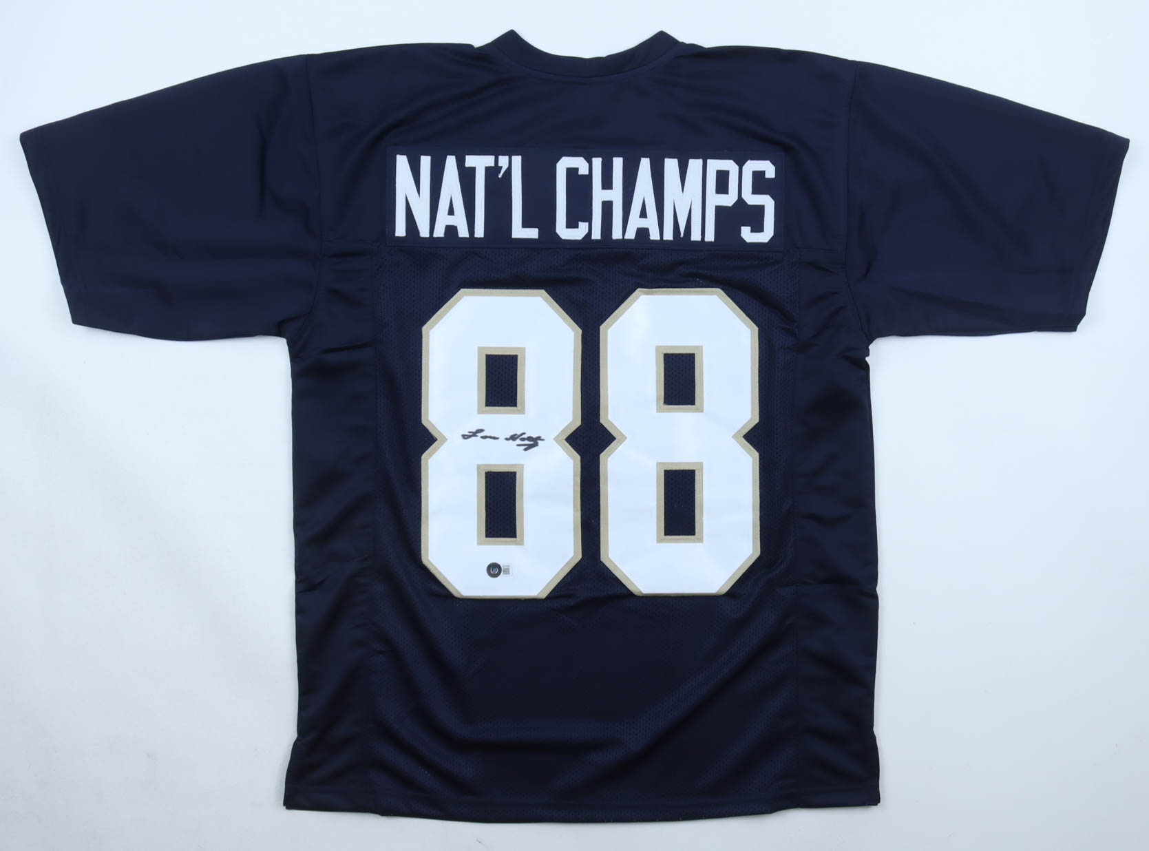Custom jersey with everything sewn on, size XL. Hand-signed by Lou Holtz.