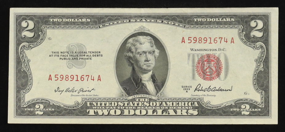 1953-A U.S. $2 Legal Tender Note, Red Seal - Fr. 1510 (AA Block) Signed: Priest / Anderson