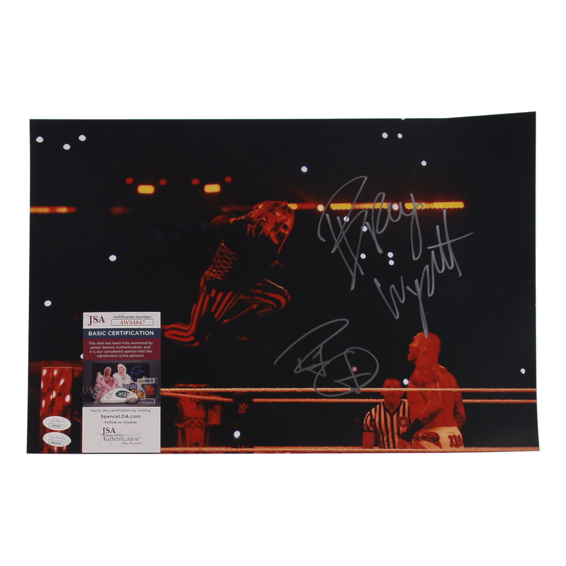 Photo measures 12" x 18" in size. Hand-signed by Bray Wyatt (D. 2023) and Randy Orton (HOF).