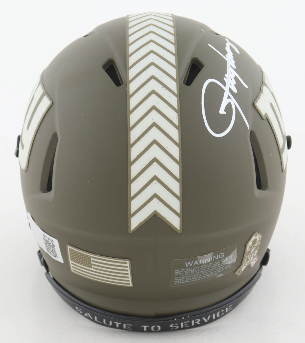 Riddell New York Giants Salute to Service Alternate Speed mini helmet. Hand-signed by Lawrence Taylor (HOF).