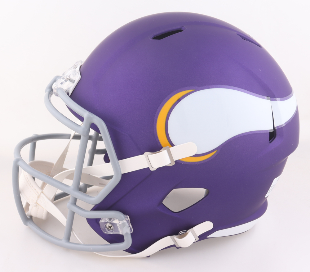 Riddell Minneota Vikings Full-Size Speed Replica Helmet. Hand-signed and inscribed by Warren Moon.