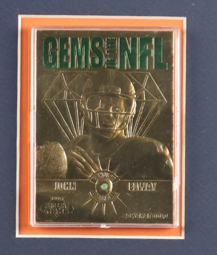 John Elway Custom Matted 1997 Score Board 23K Gold Gems Of The NFL Card with Genuine Emerald