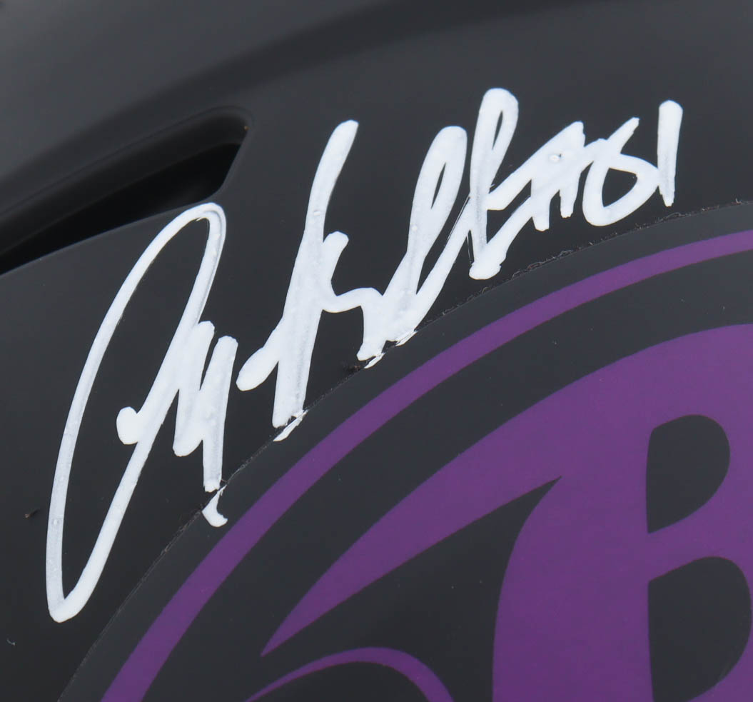 Riddell Baltimore Ravens full-size authentic on-field eclipse alternate speed helmet. Hand-signed and inscribed by Anquan Boldin.