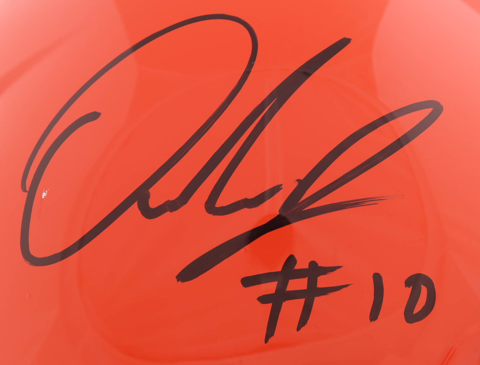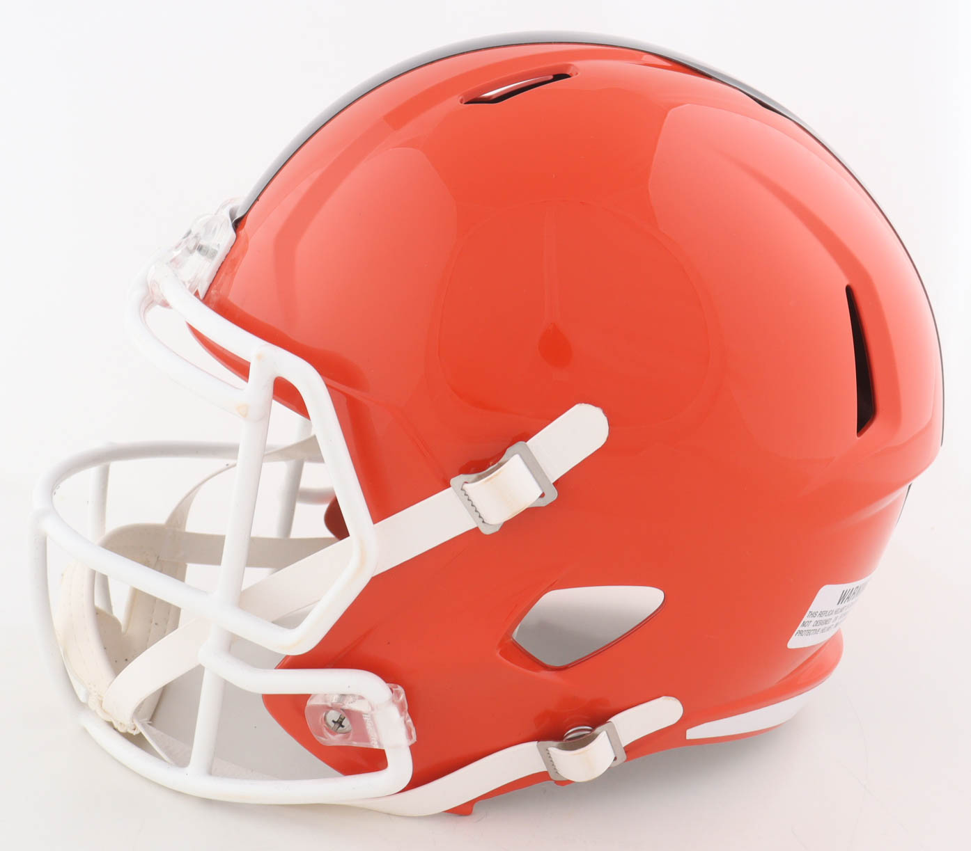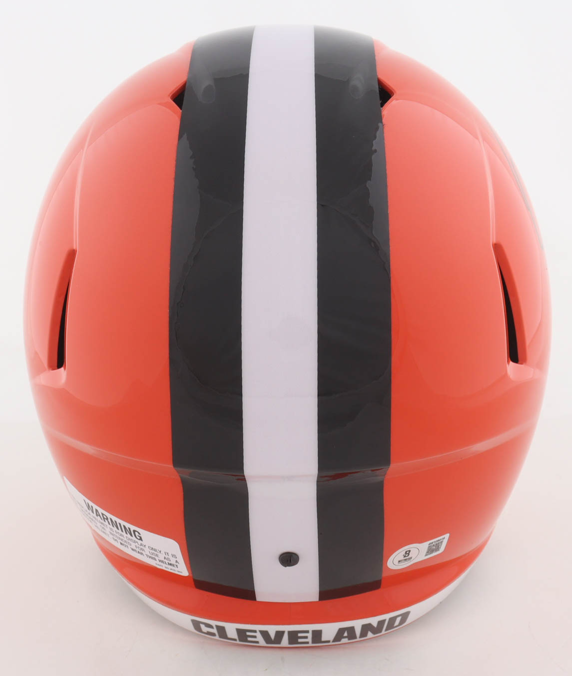 Riddell Cleveland Browns full-size replica Speed helmet. Hand-signed by Quinshon Judkins.