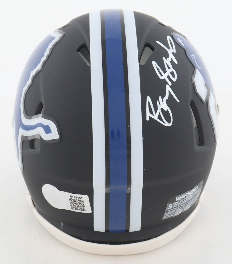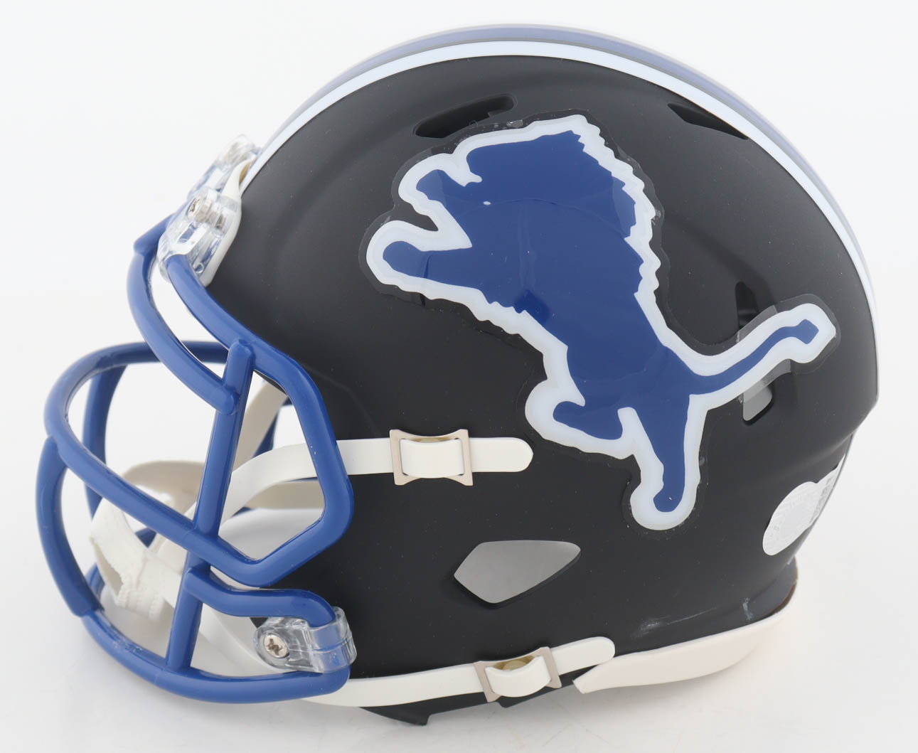 Riddell Detroit Lions Player Logo Alternate Speed mini helmet has been hand-signed by Barry Sanders (HOF).
