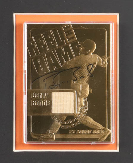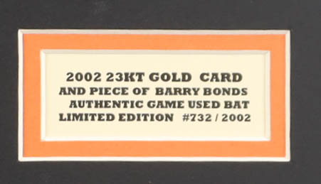 Barry Bonds Custom Matted 2002 Feel The Game 23Kt Gold Card with Game-Used Bat Piece #732/2002