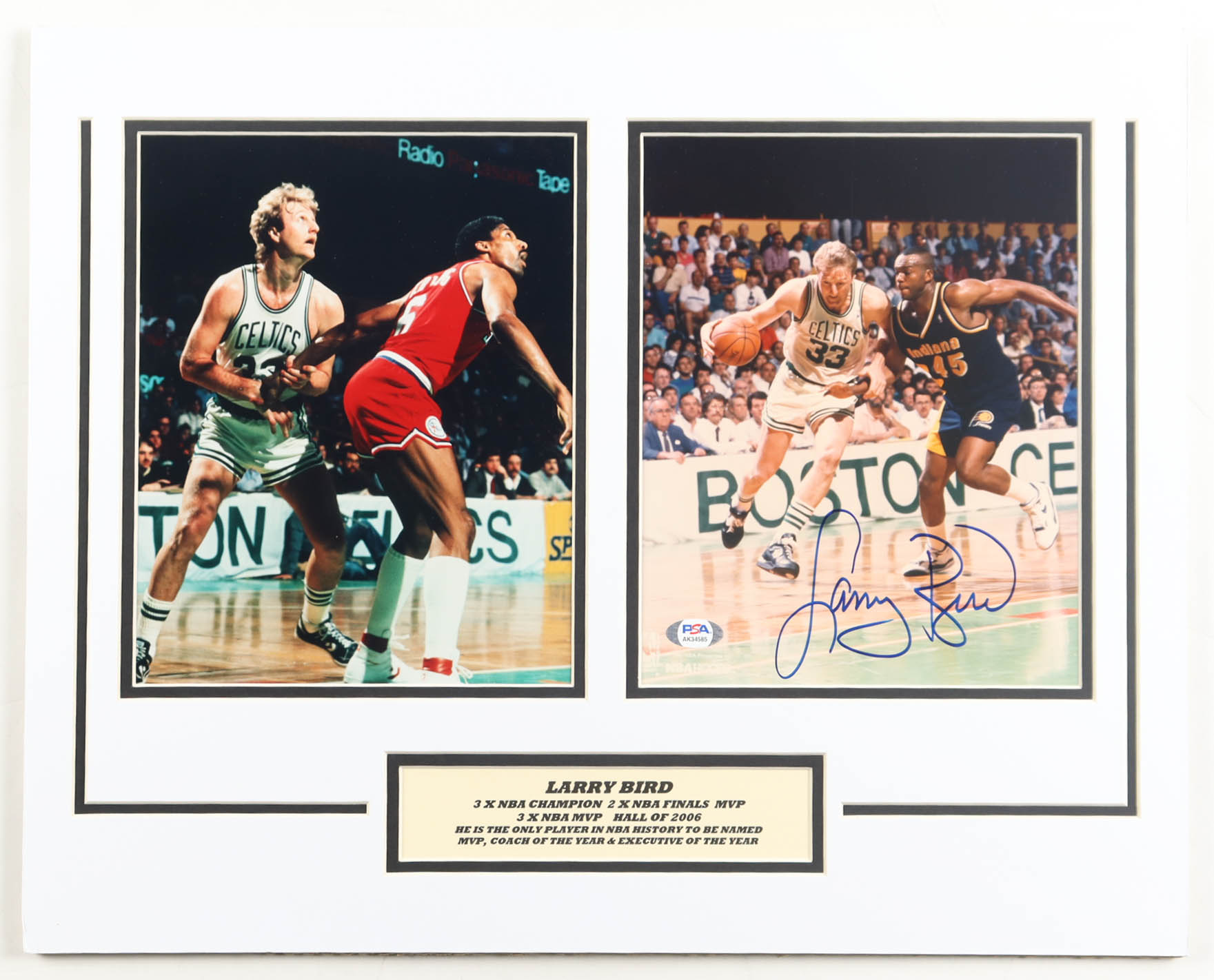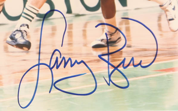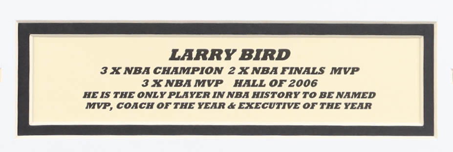Matting measures 16" x 20" in size. Features a photo that has been hand-signed by Larry Bird (Boston Celtics, HOF).
