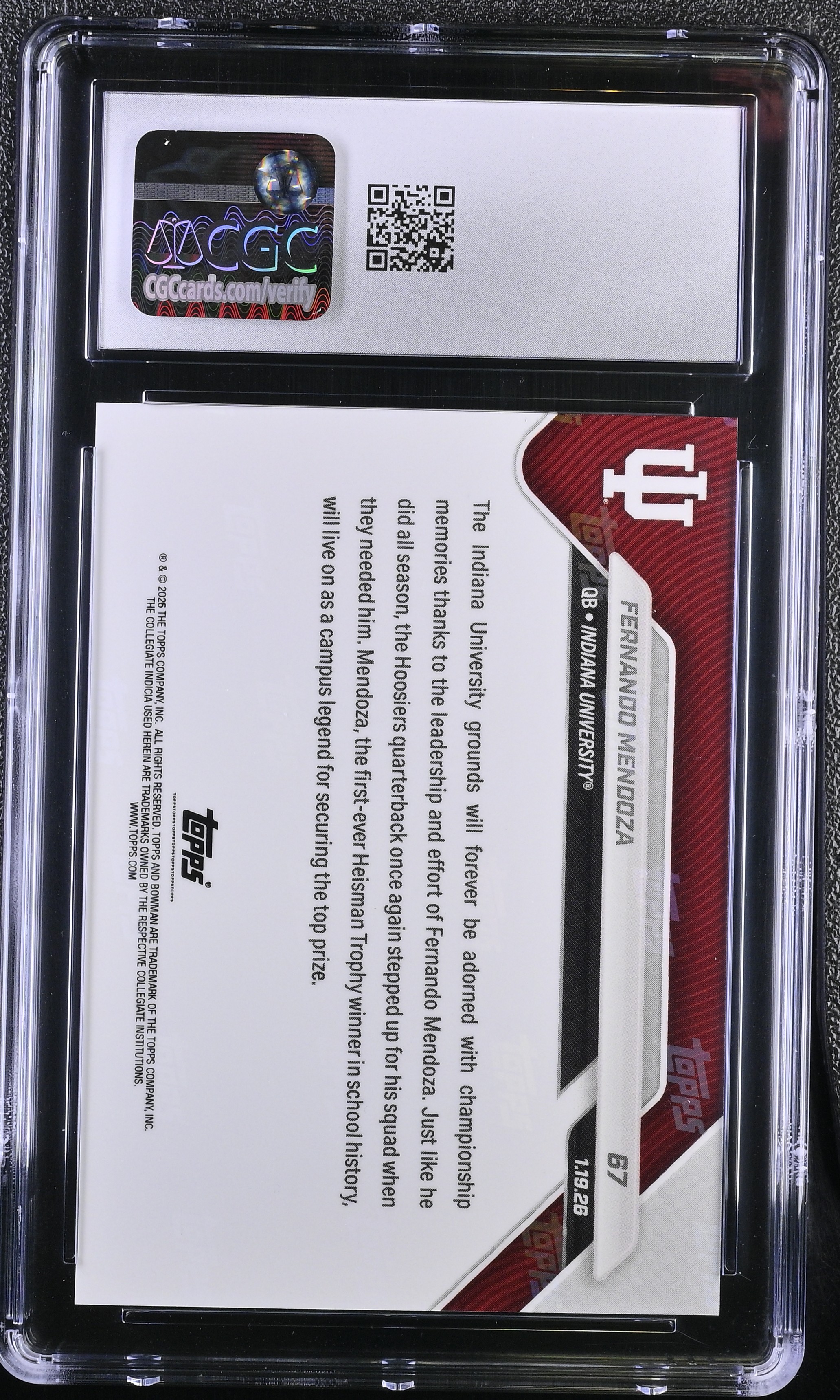 Card has been graded CGC 10 (Gem Mint). Please see photos for more details on the condition of the card (Indiana Hoosiers).